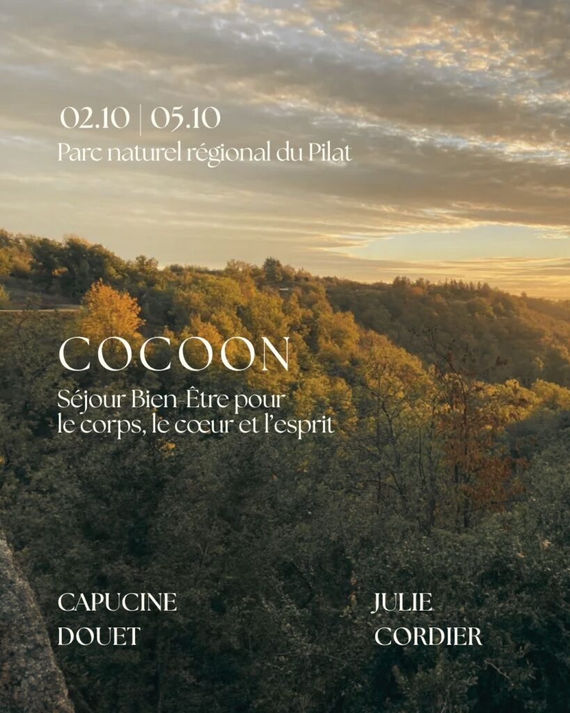 Embarquez avec Julie & Capucine dans l’expérience “COCOON – Retraite pour le corps, le cœur et l’esprit” ! Une parenthèse régénérante hors du quotidien pour se ressourcer en douceur.