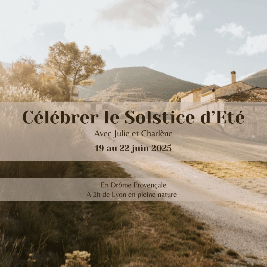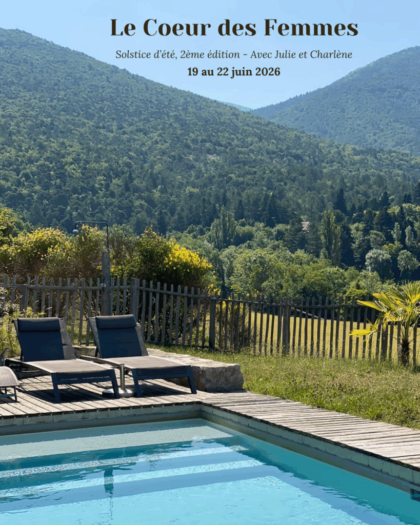 4 jours au coeur de la Drôme provençale en pleine nature et entre femmes. Du yoga vinyasa et kundalini, un voyage sonore, des ateliers, du temps libre, des baignades, de la marche, une alimentation de saison et végétarienne, tous les ingrédients sont réunis pour une parenthèse ressourçante.
